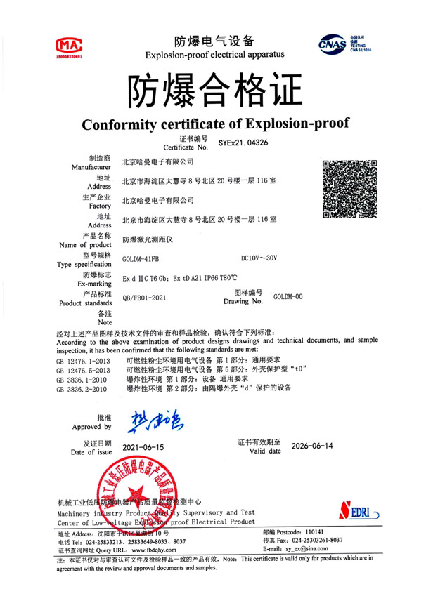 ● 证书编号:SYEx21.04326