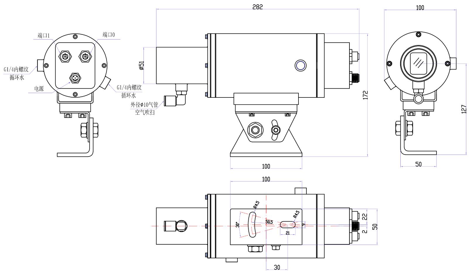 ● 不锈钢外壳,可(ke)通水、气停止冷却