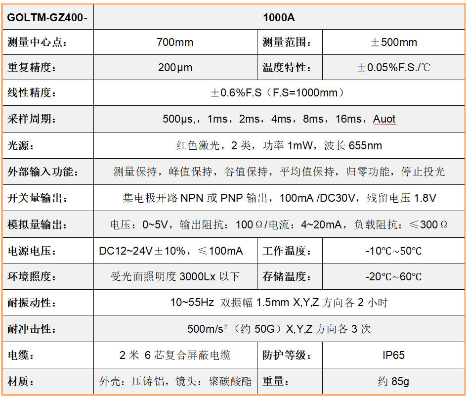 GOLTM-GZ400-1000A型紧紧皮秒激光测距仪需用于高控制精度、高频率的侧量木块位移、寸尺、的高及的高差,裝置按装简化,图文快印展现可以说 间距或可以说 间距,符合摹拟量投入及旋钮量投入。● 激光(guang)三角形(xing)丈(zhang)量道理,高(gao)精(jin🅠g)度、高(gao)速(su)率、高(gao)活络度丈(zhang)量细(xi)小(xiao)位(wei)移(yi)